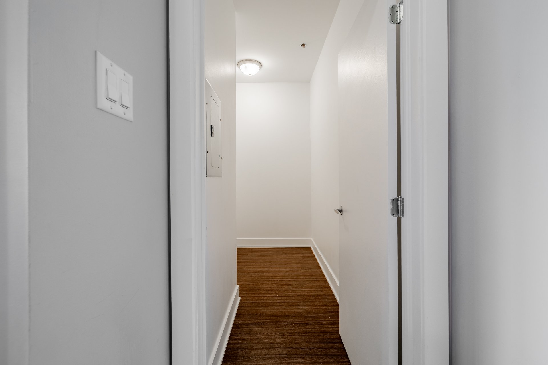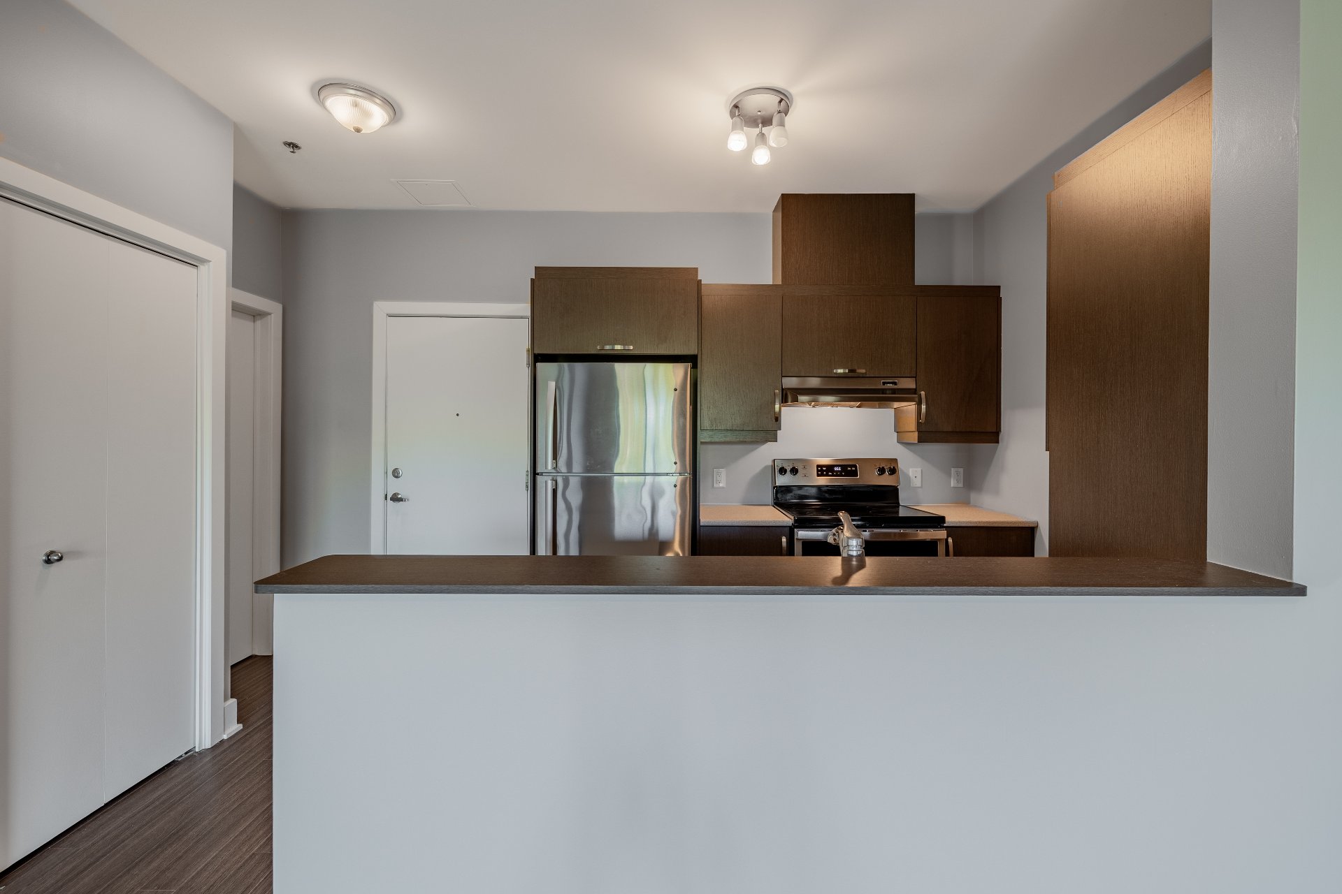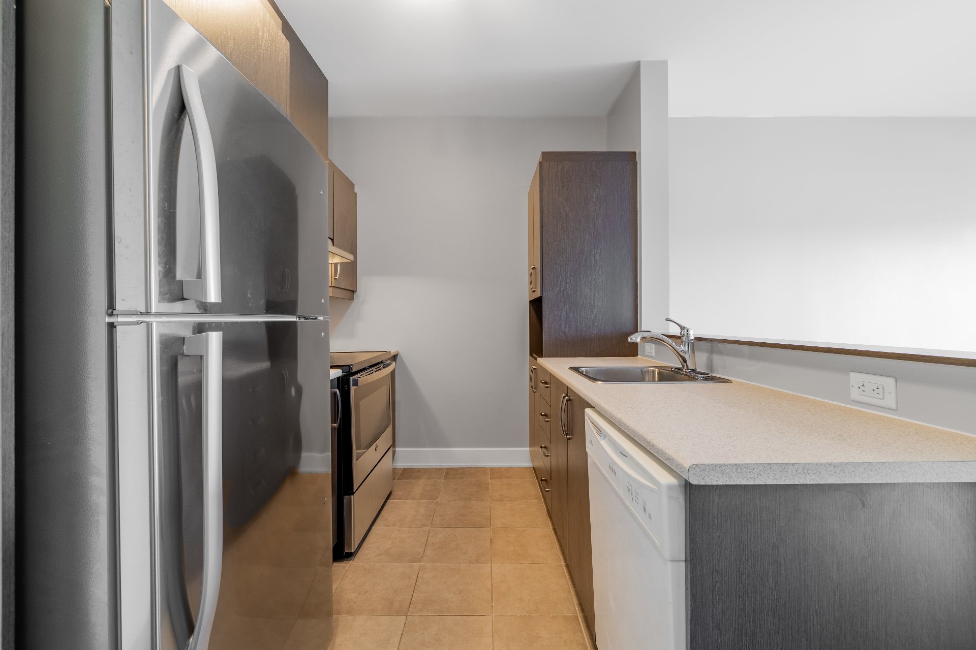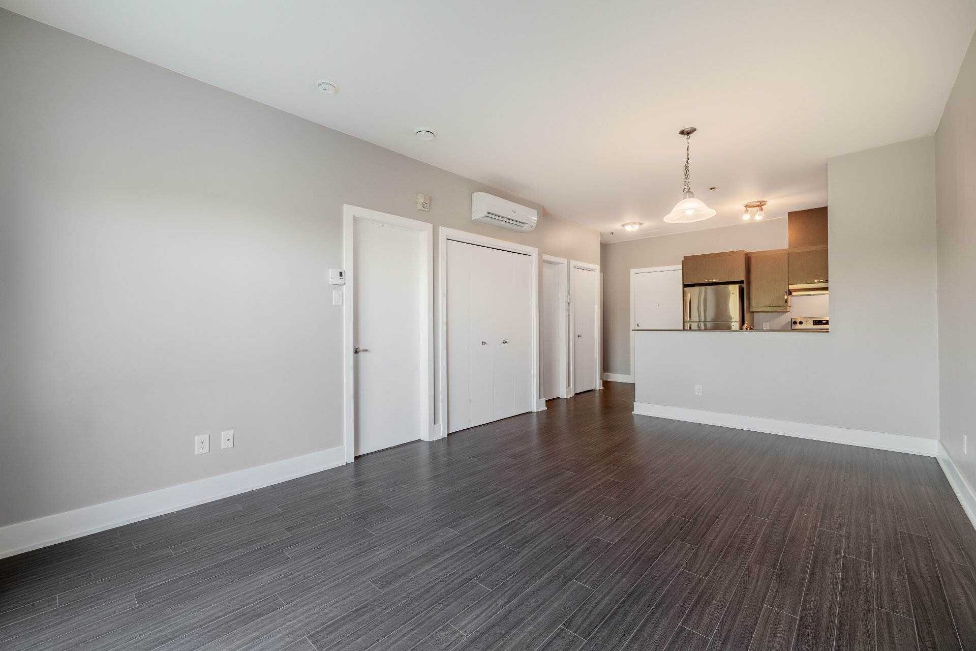 Top-Floor Condo with Garage -- Prime Location! Bright and spacious open-concept condo located on the top floor of a well-maintained building. One closed bedroom. Wall-mounted A/C. Includes a private garage. Perfectly situated near a variety of shops, restaurants, and the Pierre-Boucher Hospital. Close to Parc Michel-Chartrand and the golf course. Easy access to public transportation.