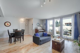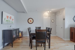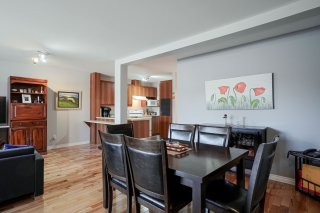 Dès l'entrée, vous découvrirez un espace de vie lumineux où le salon s'ouvre harmonieusement sur une salle à manger conviviale, créant un environnement parfait pour la vie de tous les jours. La cuisine, au goût du jour, se distingue par son grand comptoir et ses nombreuses armoires offrant un espace de rangement généreux et pratique. L'unité comprend deux chambres à coucher de bonnes dimensions ainsi qu'une salle de bain complète. La chambre principale bénéficie d'une porte-patio donnant directement accès à la terrasse, permettant de profiter d'un agréable espace extérieur.