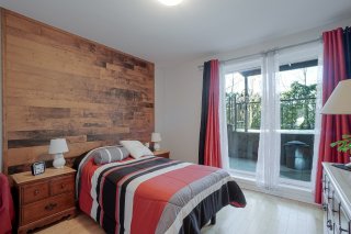* Chambre principale avec porte-patio menant à la terrasse